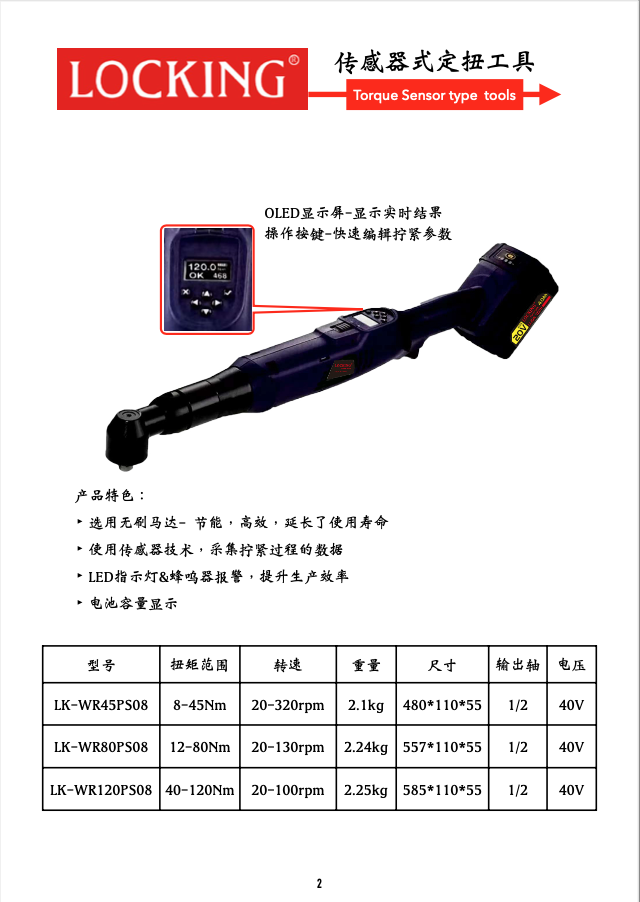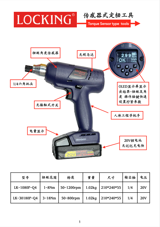 國產(chǎn)充電式傳感器定扭工具,手槍式1-8Nm/3-18Nm;彎角式:8-45Nm;12-80Nm;40-120Nm,實(shí)時(shí)顯示擰緊結(jié)果,三色LDE燈報(bào)警,傳感器定扭精度更高。
