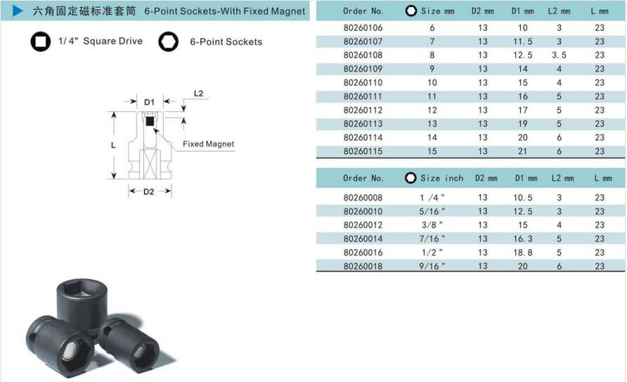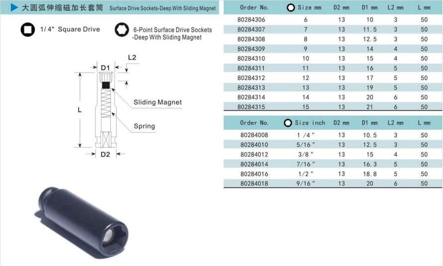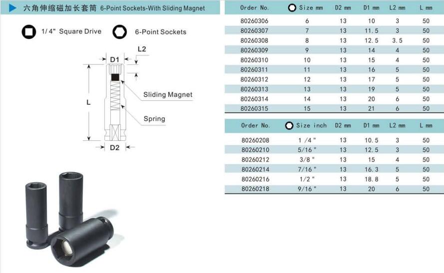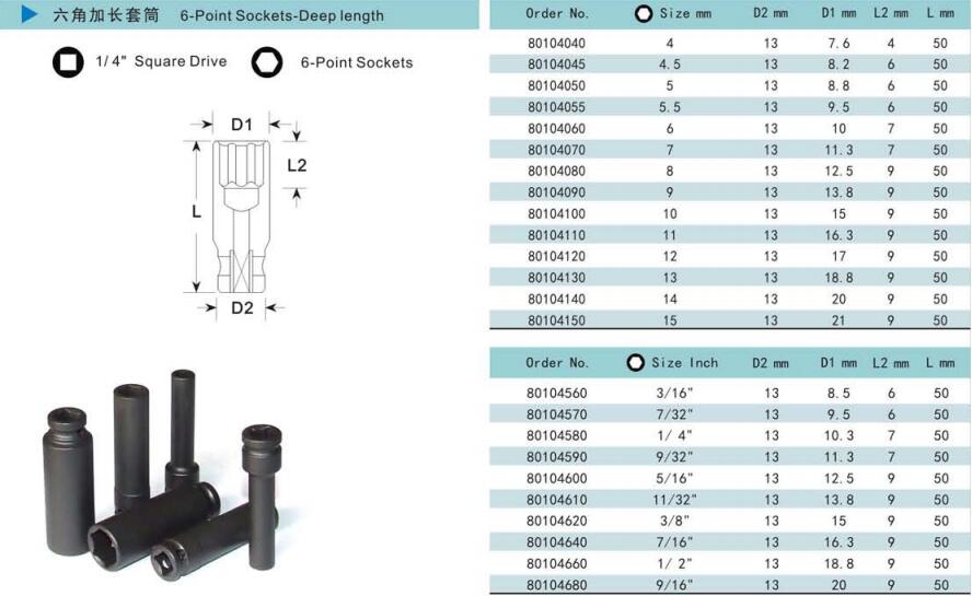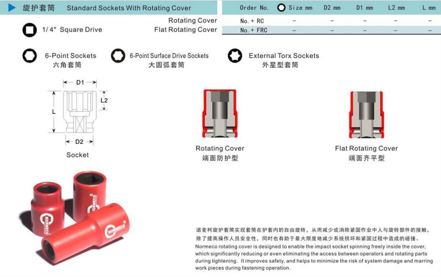 諾麥柯工業(yè)級(jí)套筒式依照美國(guó)標(biāo)準(zhǔn)及德國(guó)標(biāo)準(zhǔn)制造的世界一流產(chǎn)品。質(zhì)量控制系統(tǒng)采用最新的技術(shù)與最精確的測(cè)量?jī)x器對(duì)套筒的每一個(gè)測(cè)量點(diǎn)進(jìn)行檢測(cè),以保證每一個(gè)套筒的硬度、性能和扭矩都能達(dá)到國(guó)際標(biāo)準(zhǔn)。