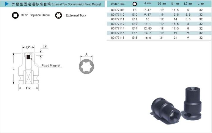 諾麥柯工業(yè)級套筒式依照美國標(biāo)準(zhǔn)及德國標(biāo)準(zhǔn)制造的世界一流產(chǎn)品。質(zhì)量控制系統(tǒng)采用最新的技術(shù)與最精確的測量儀器對套筒的每一個測量點(diǎn)進(jìn)行檢測,以保證每一個套筒的硬度、性能和扭矩都能達(dá)到國際標(biāo)準(zhǔn)。