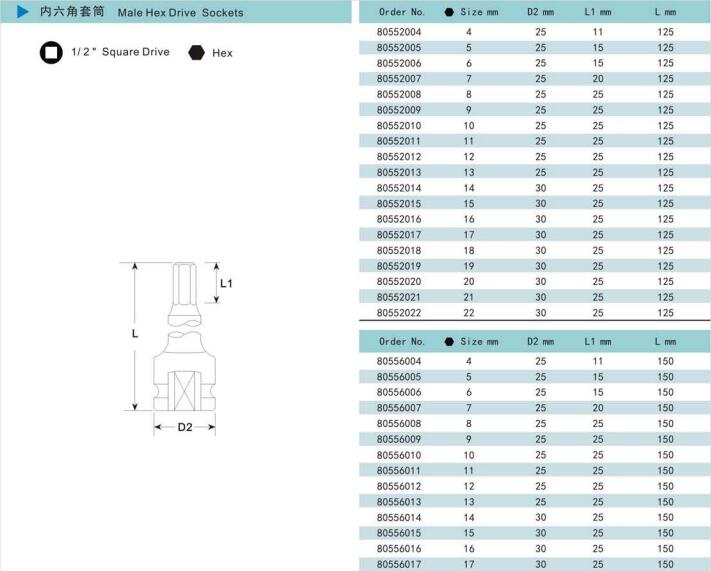 諾麥柯工業(yè)級套筒式依照美國標(biāo)準(zhǔn)及德國標(biāo)準(zhǔn)制造的世界一流產(chǎn)品。質(zhì)量控制系統(tǒng)采用最新的技術(shù)與最精確的測量儀器對套筒的每一個測量點進(jìn)行檢測,以保證每一個套筒的硬度、性能和扭矩都能達(dá)到國際標(biāo)準(zhǔn)。