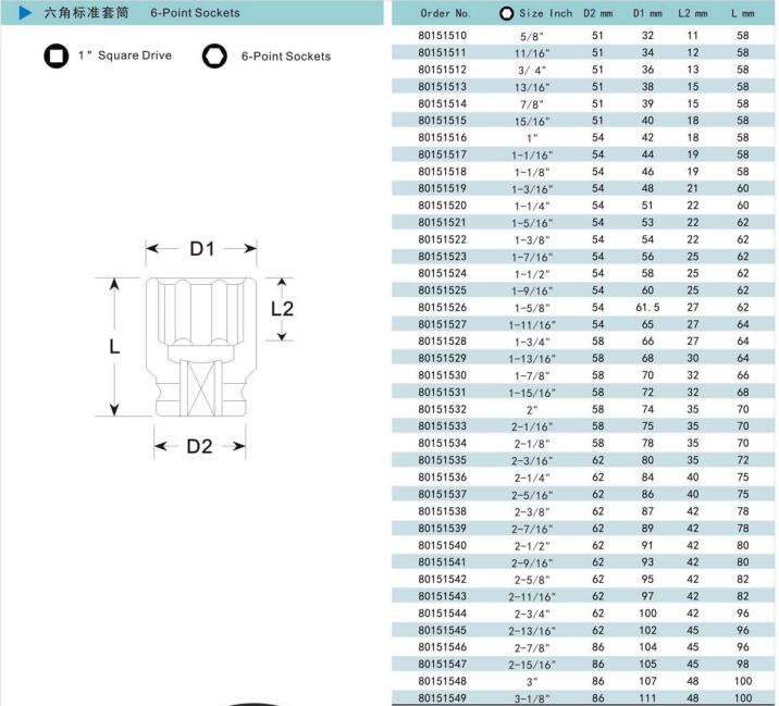 諾麥柯工業(yè)級套筒式依照美國標(biāo)準(zhǔn)及德國標(biāo)準(zhǔn)制造的世界一流產(chǎn)品。質(zhì)量控制系統(tǒng)采用最新的技術(shù)與最精確的測量儀器對套筒的每一個測量點進(jìn)行檢測,以保證每一個套筒的硬度、性能和扭矩都能達(dá)到國際標(biāo)準(zhǔn)。